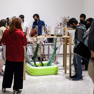 Bioarte, plásticos, papel, luz, pigmentos, textiles, minerales y metales son los medios a explorar en cada uno de los núcleos de la muestra que incluye piezas de más de una treintena de autores y ha sido curada por Ana Laura Camacho Puebla.